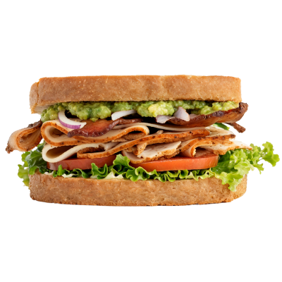 Lechuga romana, pollo, tocino, huevo cocido, queso roquefort, aguacate, tomate cherry, cebolla morada curtida, crotones y aderezo maggi ranch.